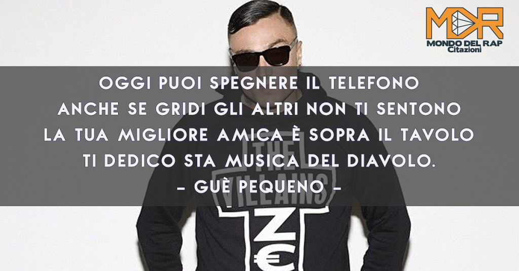 Frase: Oggi puoi spegnere il telefono, Anche se gridi gli altri non ti sentono, La tua migliore amica è sopra il tavolo, Ti dedico sta musica del diavolo.