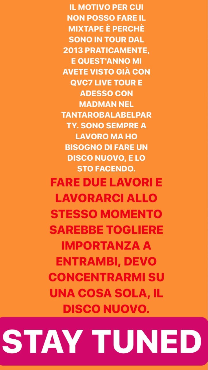 In serata poi Gemitaiz ha spiegato anche il motivo per il quale non realizzerà QVC8: