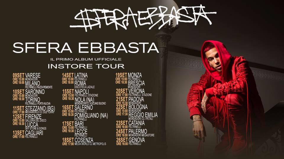 Date instore “Sfera Ebbasta” dal 9 al 26 Settembre